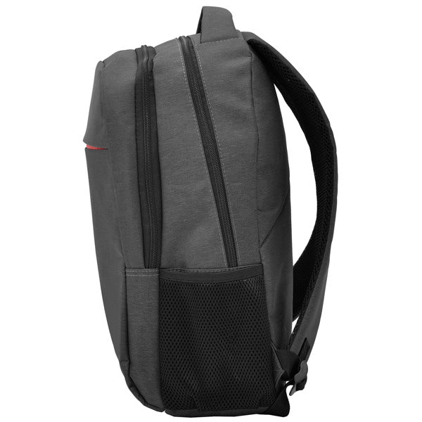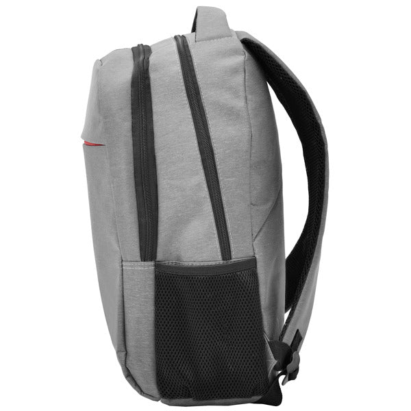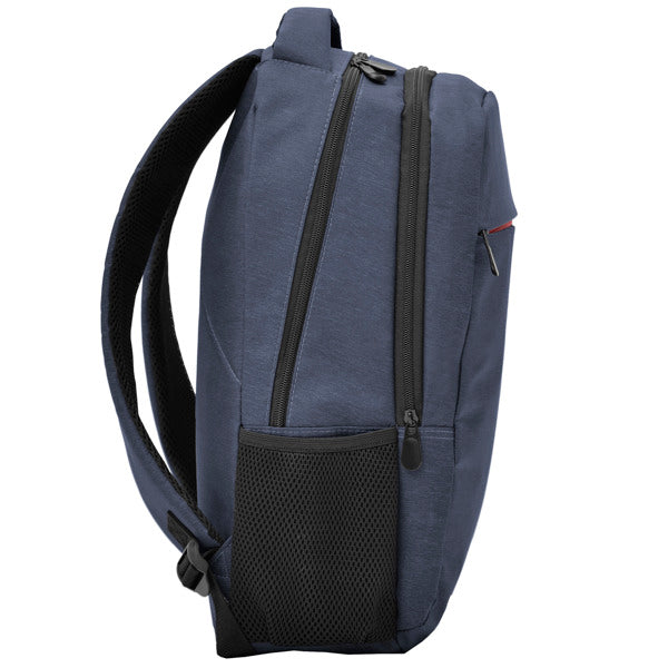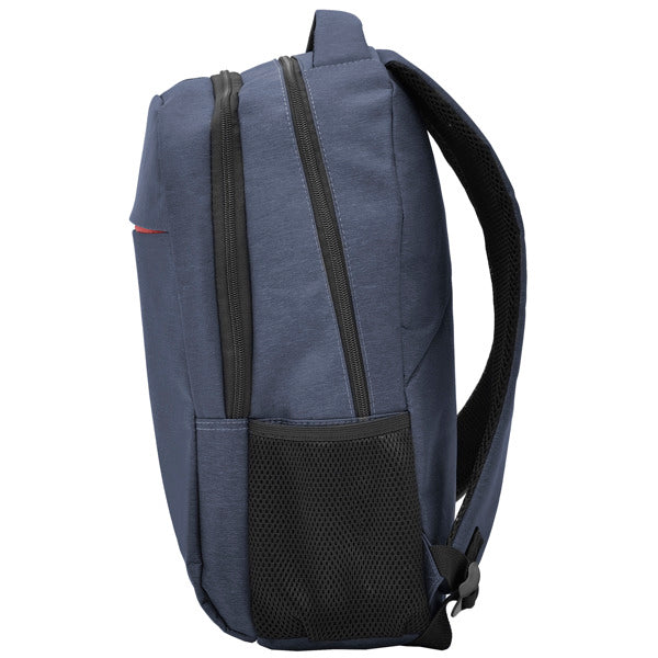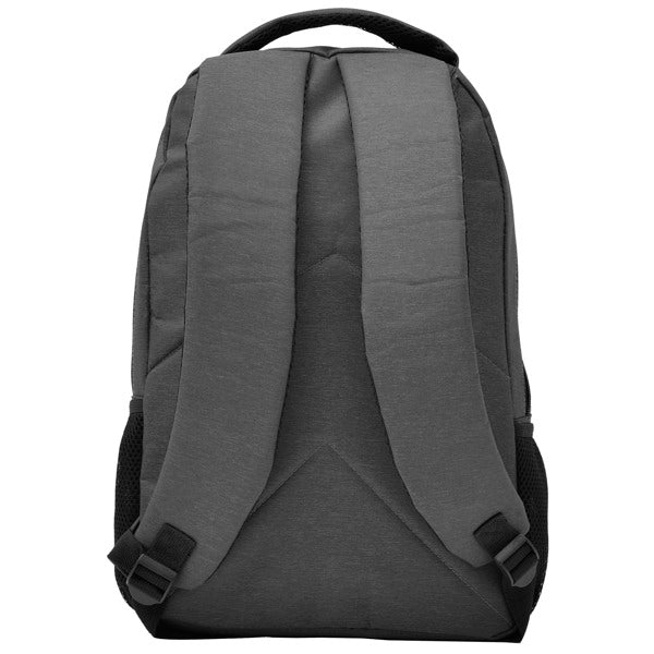 Mochila para portátil de poliéster en acabado jaspeado. Tirantes, espalda y asas acolchadas. Doble compartimento frontal y bolsillos laterales.