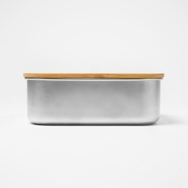 Cutie de prânz din oțel inoxidabil 304 cu capac din bambus și bandă de siguranță din poliester. Capacitate de 750 ml. Ideală pentru personalizarea și promovarea companiei dumneavoastră.