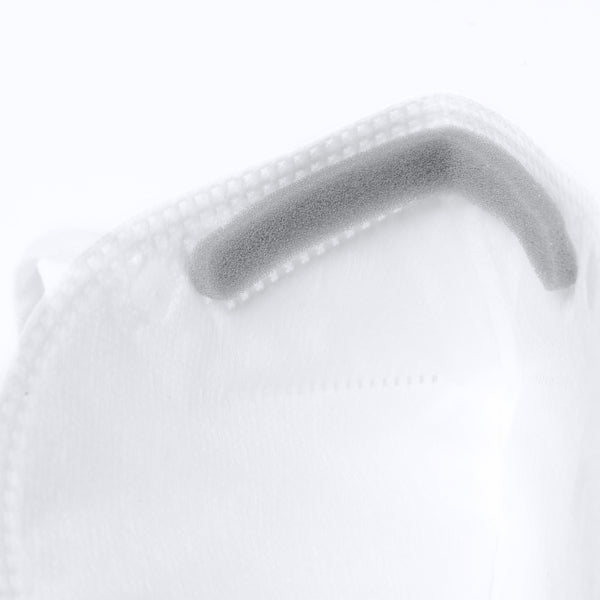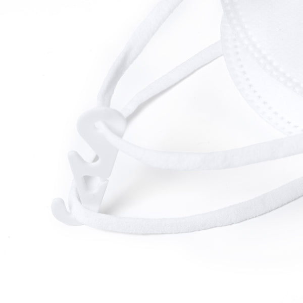 Mască de siguranță FFP2 NR în cinci straturi. Margini termosigilate, prindere elastică, accesoriu pentru prindere după cap, clemă pe nas și pad nazal interior.