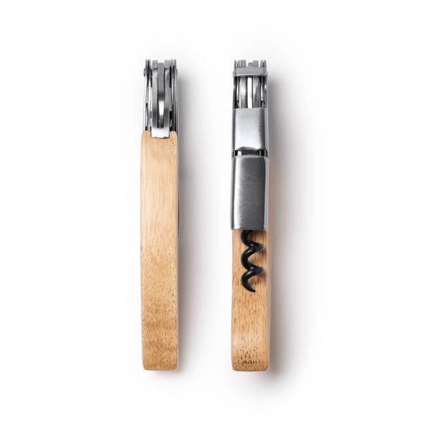 Tirbușonul din oțel inoxidabil în stil clasic, cu mâner din lemn, reprezintă un instrument elegant și funcțional pentru deschiderea cu ușurință a sticlelor de vin. Corpul din oțel inoxidabil garantează durabilitate și rezistență, în timp ce mânerul din lemn adaugă o notă caldă și naturală.Designul clasic al tirbușonului asigură o prindere confortabilă și sigură, permițându-vă să scoateți dopurile fără probleme și cu precizie. Mecanismul său cu dublă pârghie permite deschiderea sticlelor, minimizând efortul necesar.Cu acest tirbușon, vă veți bucura de experiența deschiderii unei sticle de vin într-un mod practic și stilizat. Oțelul inoxidabil de înaltă calitate și mânerul din lemn se combină perfect, creând o piesă durabilă și plăcută din punct de vedere estetic.