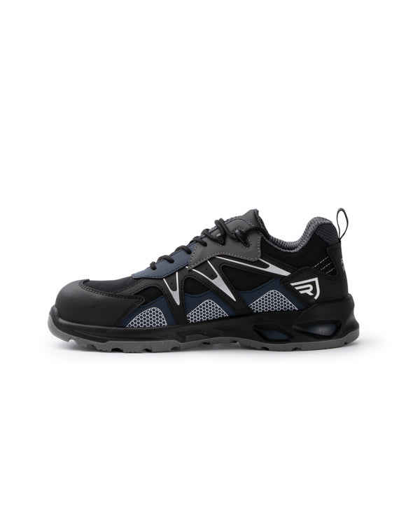 Încălțăminte de lucru în stil sportiv și material din plasă 3D, ușori și echilibrați pentru medii solicitante.· Bombeu: fibră de sticlă, 200 jouli· Branț rezistent la perforare: fibre textile PS țesute, 3 mm· Talpă: poliuretan cu densitate dublă· Fixare: cu șireturi· Întăritură: la degete și la călcâi· Tăiere material: material tehnic și microfibră